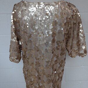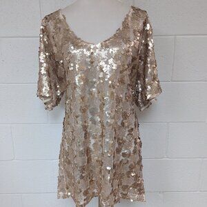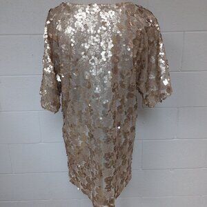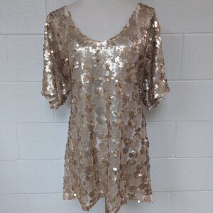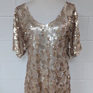 Free People Gold Sequin Semi-Sheer T-Shirt Dress, Small