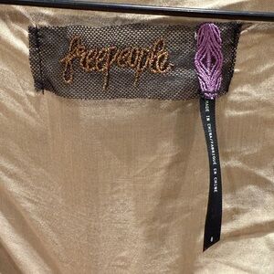 Luxurious gold fabric with intricate purple embroidery. Ideal for creative projects.