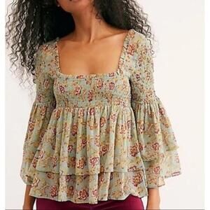 Free People Golden Age Printed Top Tiered Floral Smocked Blouse XS