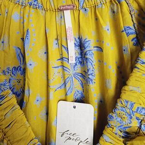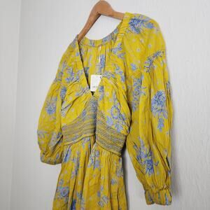 Free People Golden Hour Floral Maxi Dress Billowy V-Neck Sleeves XS NWT
