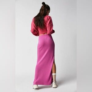Free People Golden Hour Hot Pink Knitted Side Slit Maxi Skirt Size M NEW