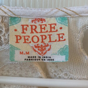 Free People Golden Metallic Goddess front button Tunic Top Ivory gold Medium