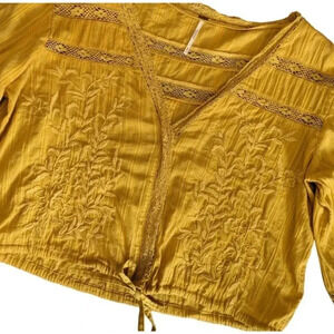 Free People Golden Mustard Yellow Follow Your Heart Crop Top Embroidered Medium