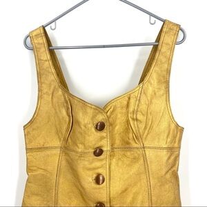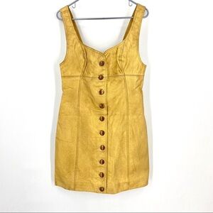 This washed leather mini dress features bronzed button closures down the front. The dress has a wore look, comes with man-made spots/pilling. See pictures.