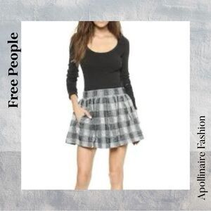 Free People Golightly Black and White Smocked Bubble Mini Skirt Large