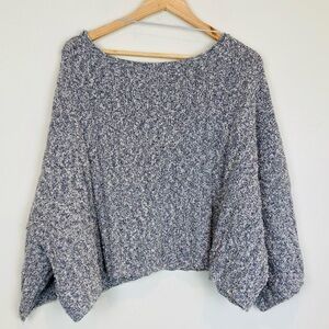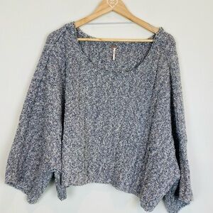 New without tags Free People cropped pullover sweater in white and gray/blue boucle. Oversized and slouchy.