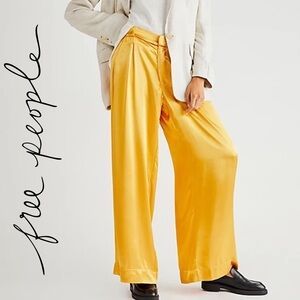 Free People Good Days Satin Wide Leg Trousers in Golden Glow Size Small EUC