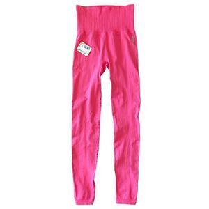 Free People Good Karma pink Electric Peony high rise stretch workout leggings.