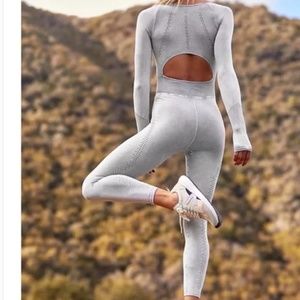 From Free People and inspired by their favorite Good Karma leggings, this ultra flattering long sleeve onesie easily transitions to brunch, Bikram and beyond. A cutout back, rounded neckline and breathable pinhole details make for a wear every day no fuss fit.