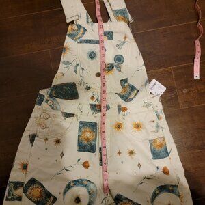 Free People Good Luck Barrel Printed Overalls Womens S Denim Tarot Convo Boho Y2