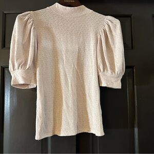 Free People Good Luck Tee Pink Nectar Mock Neck Puff Sleeves Size Medium(H)