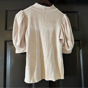 Free People Good Luck Tee Pink Nectar Mock Neck Puff Sleeves Size Medium (H)