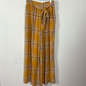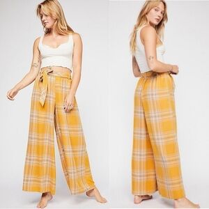 Free People Good Or Plaid Wide Leg Pants in Mustard Size Small