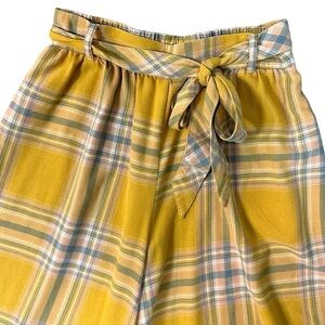 Comfy wide leg pants featured in a plaid pattern with a tie waist belt.