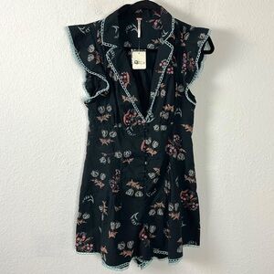 Free People Good Things Romper in Black Floral Combo Size 2 NWT Dainty Spring