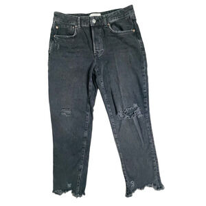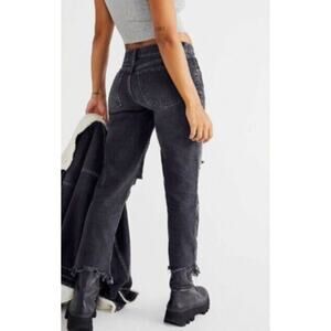 Free People Good Times Relaxed Jeans Black Frayed Destroyed Raw Crop Jeans 28