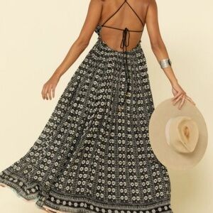 Free People Good Vibes Embellished Mirror Halter Boho Maxi Dress Sz Medium