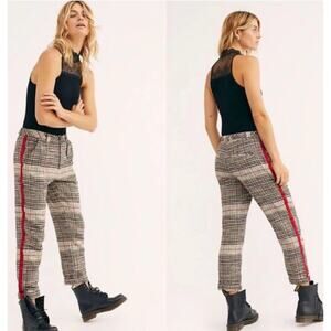 Free People Good Vibes Plaid Pants Size 0 Straight Leg Pinstripe Punk Grunge