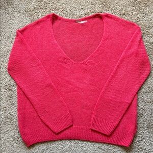 Free People Gossamer V Neck Pink Alpaca Wool Blend Oversized Sweater
