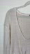 Baggy pullover sweater in neutral beige color features v-neckline and long sleeves in a ribbed knit. Has exposed seams and large front twist knot.