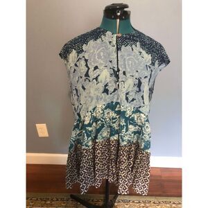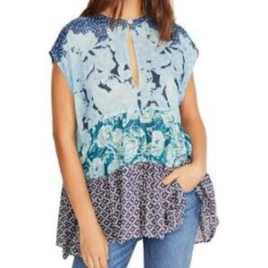 Free People Gotta Have You Blue & Purple Floral Block Printed Blouse, XS