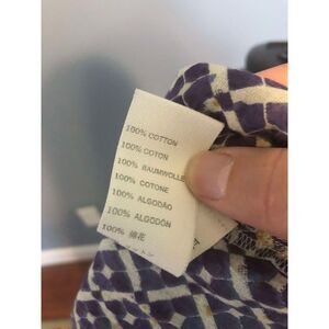 This flowy, fun top is made of 100% cotton material and is so lightweight and comfortable. It is in good pre-loved condition!
