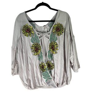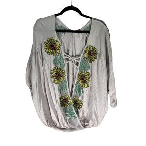 Free People Gotta Love It Embroidered Neutral Gray Yellow Floral Top