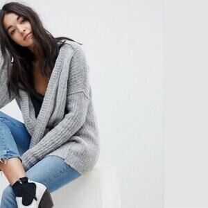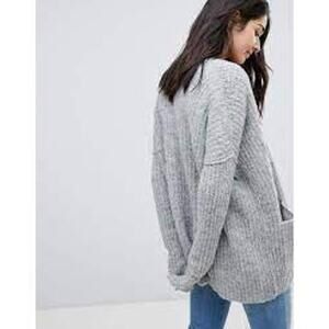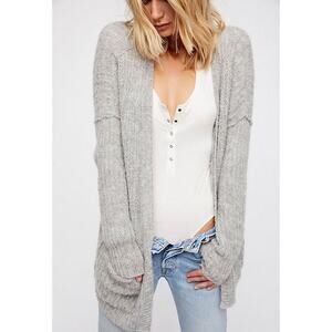 Free People Gray Alpaca Knit Open Front lightweight Cardi Cardigan