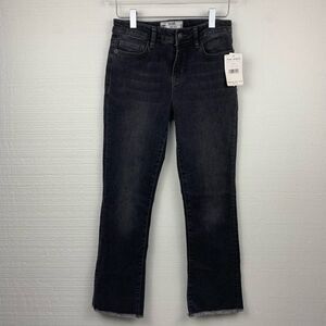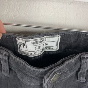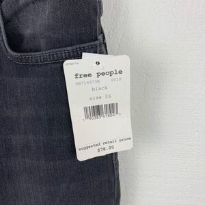 Great pair of faded black jeans by Free People. New with tags. Straight leg, cropped with a raw hem. Perfect to dress up with a pair of heels or dress down with a pair of sneakers.