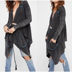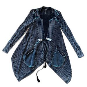 Free People Gray Blue All Washed Out Cable Knit Duster Cardigan Women's Size XS
