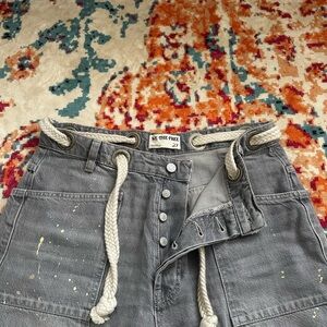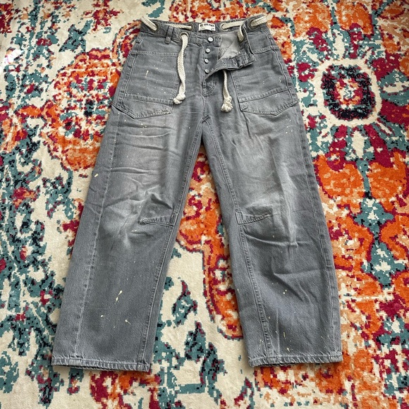 Free People Gray Button-Fly Jeans with Rope Drawstring