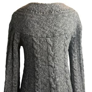 Free People Gray Cable Knit Sweater Dress, A-Line, Bell Sleeves, Wool, Small