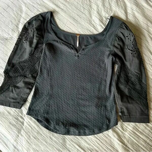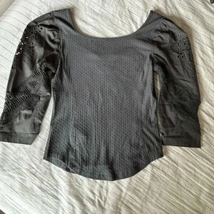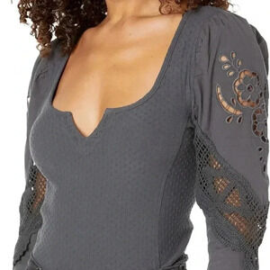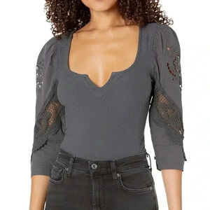 Free People Gray Embroidered Top