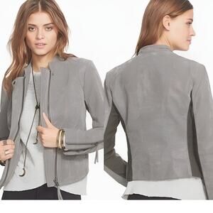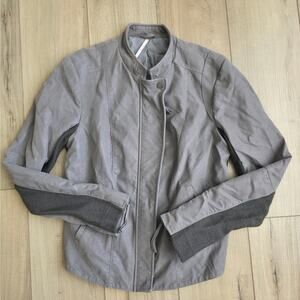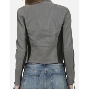 Free People Gray Faux Vegan Leather Zip Up Moto Jacket Women Sz 10