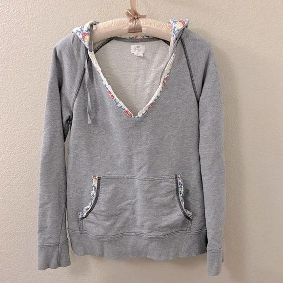 Free People Gray Heather Hoodie with lace and waffle print detail