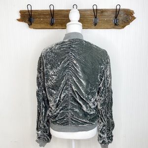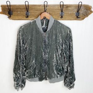 Free People Gray Jacket Velvet Ruched Bomber Jacket