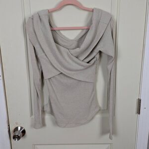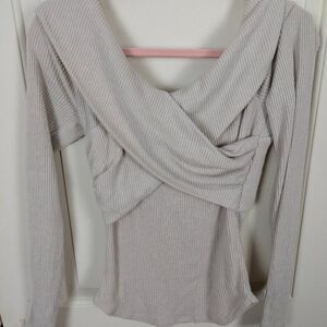 Free People | Gray Ribbed Cross Front Long Sleeve Top Size US M