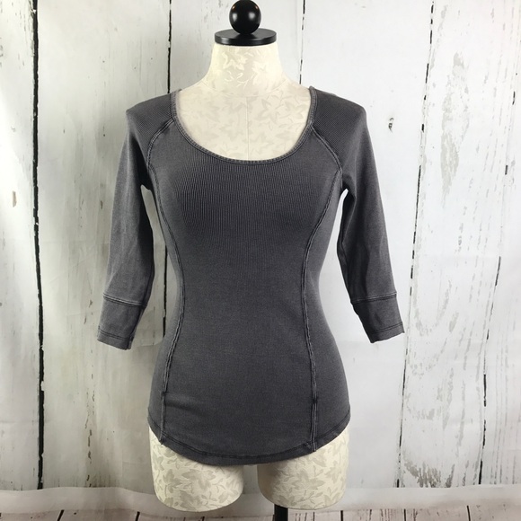 Free People Gray Ribbed Top