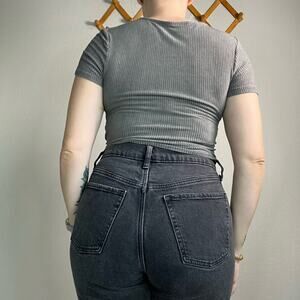 Free People Gray Ribbed Wrap Shirt - Size small - stretchy and comfy - excellent pre-owned condition!