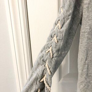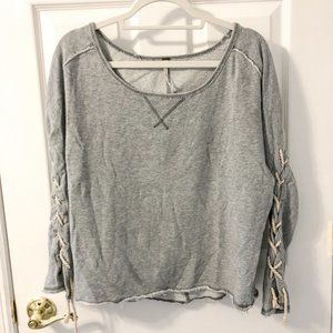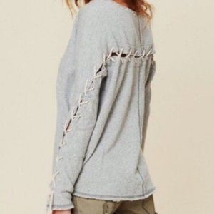 Free People Gray Rope Cord Detail Oversized Pullover Sweater