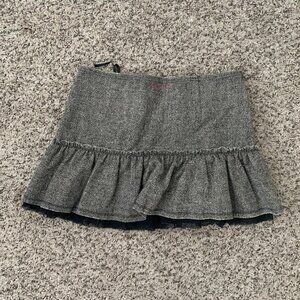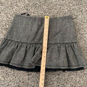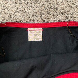 Free People Gray Ruffle Mini Skirt With Red Zipper & Button Accents