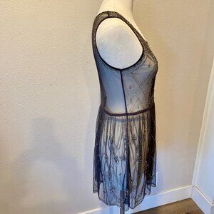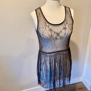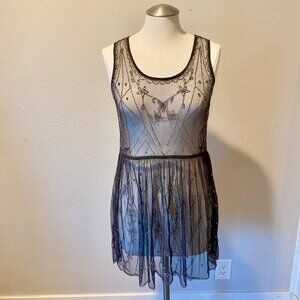 Free People Gray Sheer Beaded Starry Night Tulle Ballet Aesthetic Tank Dress