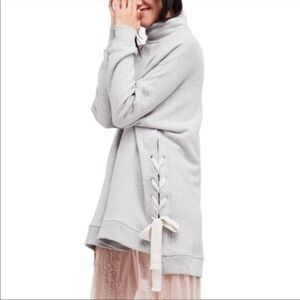 Free People Gray So Plush Lace Up Pullover Sweater. Size XS, fits oversized