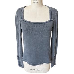 Free People Gray Squareneck Thermal Long Sleeve Shirt Size XL XLarge