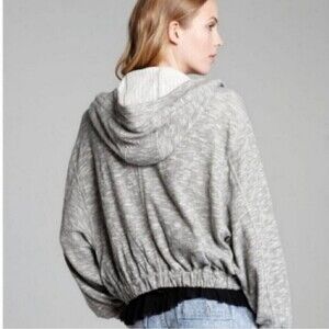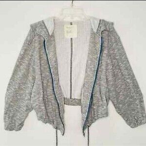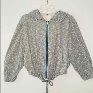 Free People Gray Static Cropped Hooded Zip Up Sweatshirt Jacket XS