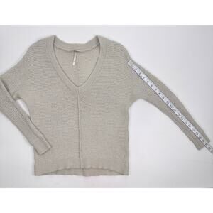 Free People gray v-neck sweater women’s XS, alpaca wool blend knit pullover, cozy textured gray top, soft neutral winter sweater, boho minimalist knitwear, slouchy Free People sweater, relaxed fit fall layering piece, lightweight gray pullover.