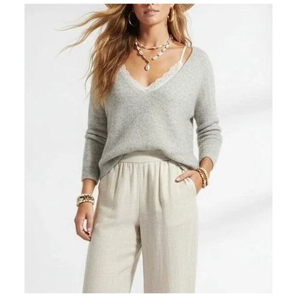 Chic V-neck sweater. Soft knit fabric. Perfect for layering.
