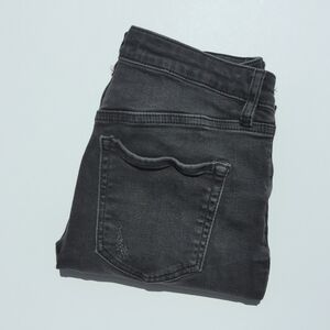 These super cute and classic jeans feature a mid rise and a skinny fit. They have distressing down the front with a frayed raw hem that is ankle cropped. They button and zip to close with belt loops and double pockets on the front and back. They have a faded black wash. Extremely stylish, flattering and easy to style! Pair with graphic tees and sneakers for go to look! Perfect for wear year round! High quality denim!