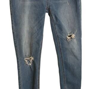 Free People Great Heights Frayed Skinny Jeans Women's 26 Distressed Blue Demin