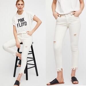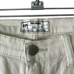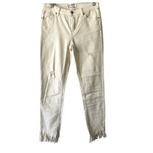 Free People Great Heights Jeans Distressed Fringe Frayed Hem White Ivory Size 26